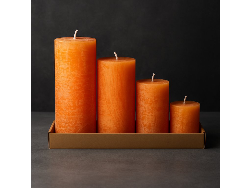 Vneste do svého domova klidnou atmosféru s ručně vyráběnými oranžovými svíčkami s jemnou vánoční vůní pomeranče. Sada obsahuje čtyři válcové svíčky různých výšek, které jsou ideální nejen pro adventní věnce, ale i jako celoroční dekorace do interiéru.